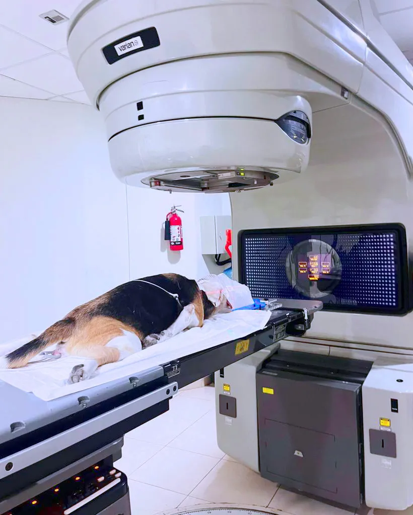 La radioterapia veterinaria es un tratamiento localizado y no invasivo que utiliza radiación ionizante para eliminar células tumorales. Su objetivo es destruir el tejido tumoral, preservando al máximo los órganos y tejidos sanos que lo rodean.